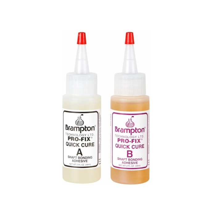 This is a kit of two 2 oz. bottles (4 total ounces of epoxy when mixed). Formulated specifically for the golf industry, PRO-FIX 5/15 Quick Cure is a toughened medium-viscosity, impact-resistant two part epoxy that gives the strength of long cure adhesives. Quick Cure has a gel time of 5-8 minutes and a playable strength within 20-30 minutes at standard temperature (allow longer time for colder temps). Follow the Five Step Mixing Procedure below to ensure proper bond.